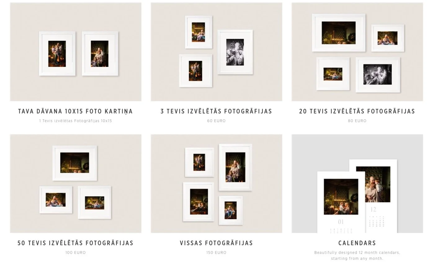 Digitālo fotogrāfiju komplekti pieejami, sākot no 60€. Vidēji mūsu klienti iegulda 100€, iegūstot 50 augstas kvalitātes fotogrāfijas.